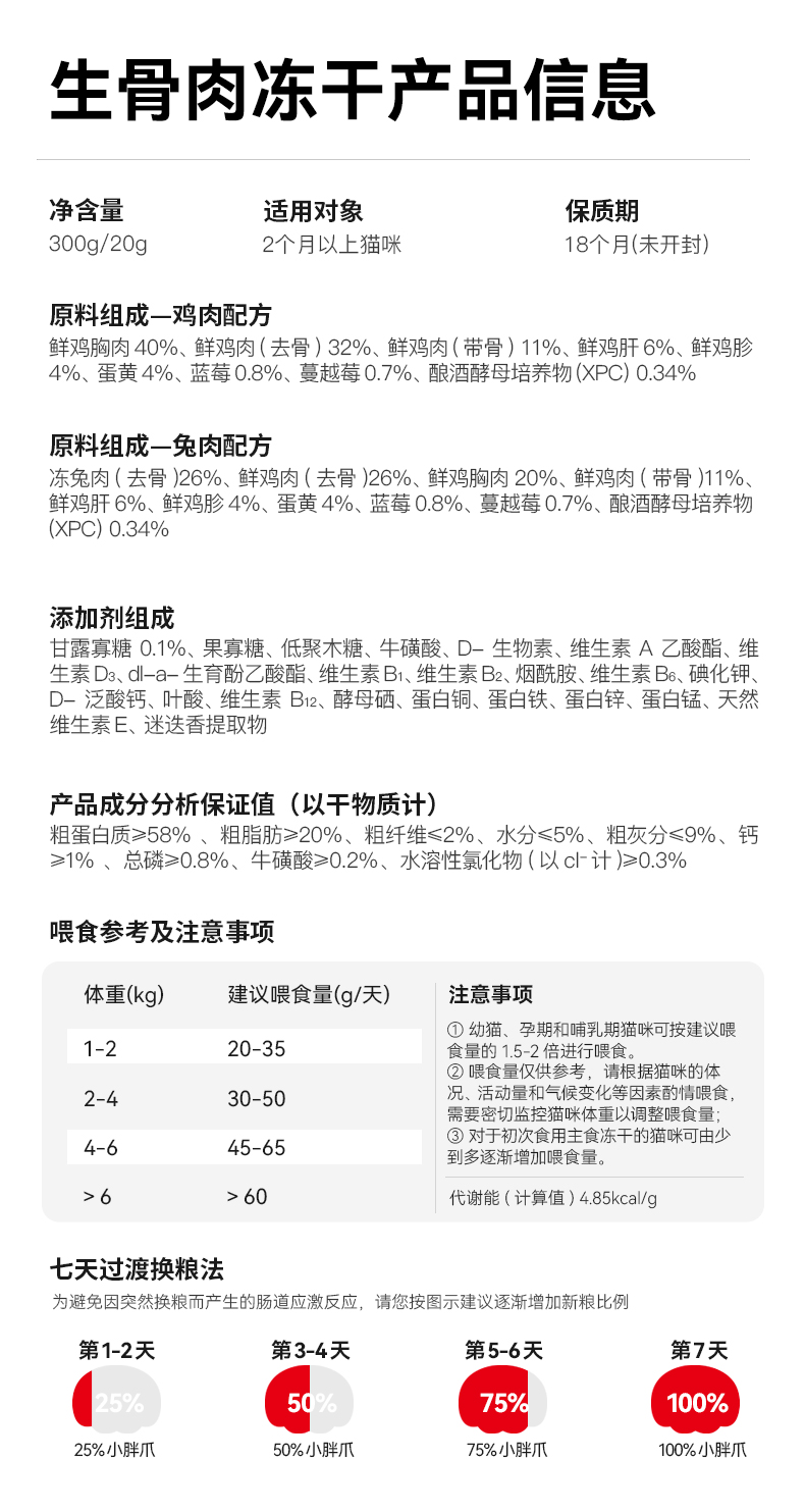 小胖爪 全价生骨肉冻干(兔肉味) 300g*2袋
