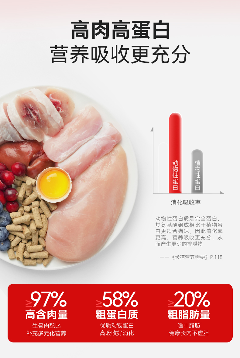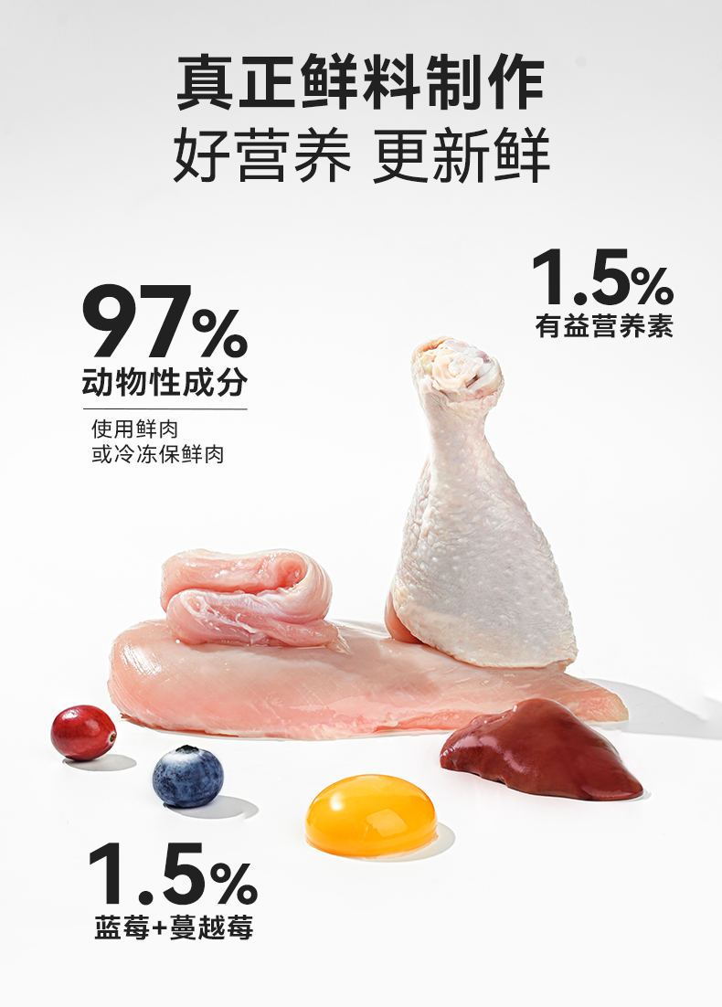 该产品含有高达97%的肉含量,能够满足猫咪的食肉天性,提供丰富的蛋白质和营养成分‌。