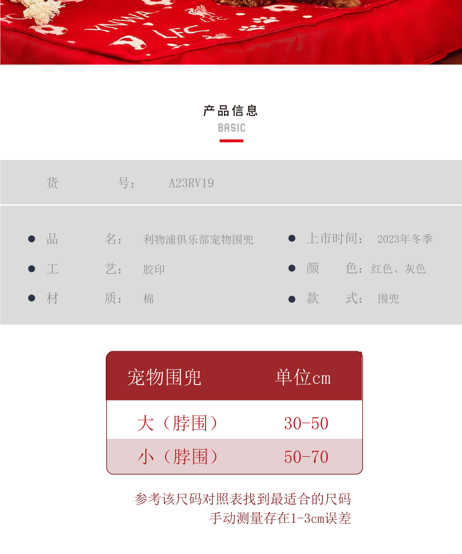 利物浦俱乐部 | 双面印花宠物围兜可爱猫咪狗狗服饰 大码