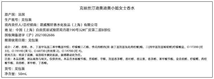 迪奥 克丽丝汀迪奥小姐花漾女士淡香水 50ml