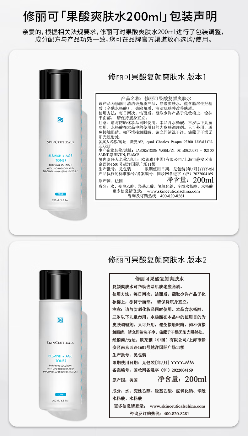 修丽可 果酸复颜爽肤水 200ml