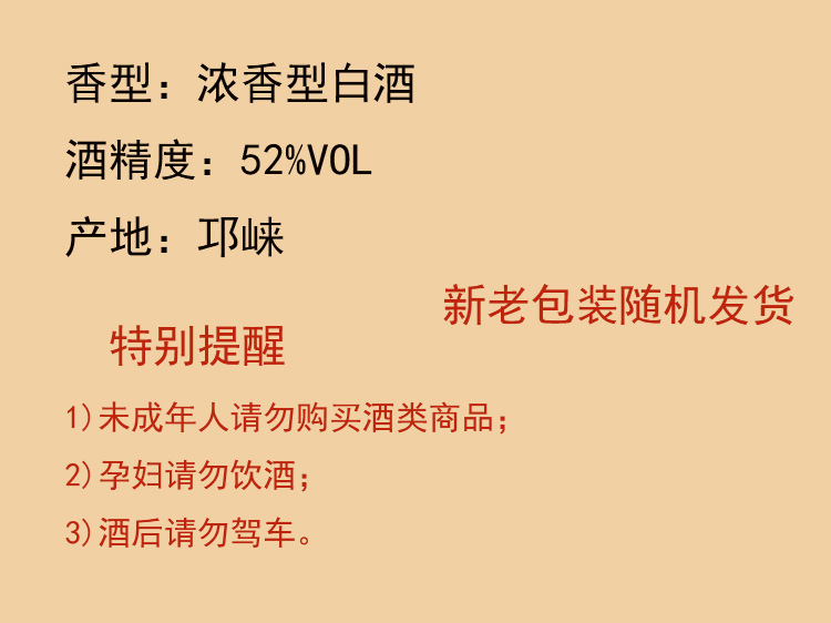 饮酒危害健康,合理饮酒,切勿过量;未成年人请勿购买酒类商品;孕妇、哺乳期妇女请勿饮酒;酒后请勿驾车。